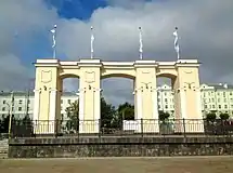 Вид на улицу Лядова через центральный вход в Парк «Крылья Советов»