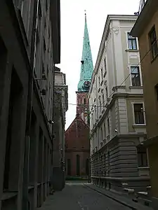 ![]() Улица Маза Трокшню, в перспективе улицы — собор Святого Екаба | |
