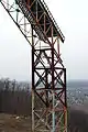 Опора обрушившегося трамплина К-90 (К-120) возле канатной дороги к паромной переправе «Трамплин», напротив Лесопаркового жилого района, в лесопарке восточного склона Уфы. Снесён полностью весной 2016 года