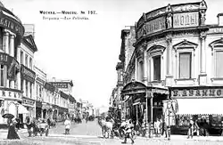 В XIX веке Петровка приобрела славу одной из главных торговых улиц Москвы[3]. Здесь торговали, в основном, одеждой и предметами роскоши. Большинство магазинов и лавок принадлежали иностранцам. В конце века на правой стороне улицы были построены два больших здания (№ 18-20), в нижних этажах которых располагались магазины, а в верхних — квартиры и гостиницы. Проезд между зданиями был подарен городу и стал улицей Петровские Линии. В начале XX века значение Петровки, как торговой улицы, ещё более выросло — в 1898 году построен дом и магазин виноторговой фирмы Депре, в 1906 году Петровский пассаж, в 1908 году магазин «Мюр и Мерилиз», позднее преобразованный в ЦУМ[5]. Известный писатель П. Д. Боборыкин, говоря о Петровке на стыке веков, писал: