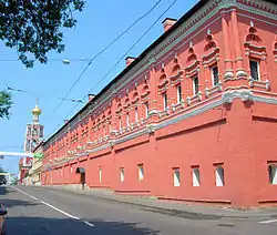 Территория бывшего мужского Высоко-Петровского монастыря занимает целый квартал. Первое упоминание о нём датируется 1377 годом. Монастырь был закрыт в 1922 году; в 1990-х годах в трапезной церкви возобновлены богослужения. В настоятельском корпусе сейчас размещается Отдел религиозного образования и катехизации Московского патриархата. Часть монастырского ансамбля составляют Нарышкинские палаты, где в период 1971-2014 гг. размещались выставочные залы Государственного Литературного музея[20]. Наиболее примечательны Храм святителя Петра Митрополита (1514 год, обновлён в 1686 году[21]), Собор Боголюбской иконы Божией Матери с усыпальницей Нарышкиных (1684), Церковь преподобного Сергия Радонежского (1702), Надвратная церковь Покрова Пресвятой Богородицы (1696).
