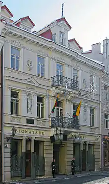 В двухэтажном доме под № 5, реконструировавшемся после пожаров 1737 и 1748 годов, тоже жили члены виленского капитула. Во второй половине XIX века дом часто перестраивался и ремонтировался. В 1969 году здание ремонтировалось по проекту архитектора Генрихаса Вичаса. Несимметрично расположенный подъезд был замурован; его означала прямоугольная ниша.[2] C 1976 года второй этаж занимало Министерство внутренних дел, внизу было его ведомственное ателье; сейчас на первом этаже греческий ресторан, а ниша стала его витриной.