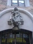По правую сторону следующее за «Жалтвиксле» здание под тем же номером 11 выделяется стеной из неоштукатуренного красного кирпича. Над низким полукруглым окном в нише, повторяющей очертания окна, в 1979 году установлена скульптура Эгле Йокубоните, изображающая женскую фигуру на фоне развёрнутой книги, с датой основания университета «1579» на выгнутом постаменте; скульптура символизирует филологию. На улицу выходят окна аудиторий филологического факультета университета. Здание в нынешнем виде сформировалось после 1832 года, когда архитектор Иван Левицкий соединил три отдельных дворца XVIII века Плятеров, Масальских и Огинских. При реставрации здания в 1965—1970 годах был открыт подлинный фасад дворца Масальских XVI века.