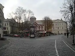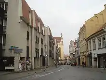 По правой стороне от улицы Швянто Йоно до сквера К. Сирвидаса (K.Sirvydo skveras ) перед переулком Шварцо (Švarco skg.; в советское время переулок Сянасис), откуда начинается улица Диджёйи, тянется современное пятиэтажное здание, построенное в 1975 году на месте пострадавших во время Второй мировой войны Кардиналии — резиденции Радзивиллов, дома ювелира Вагнера, в котором перед Первой мировой войной был книжный магазин Завадского, дома ректора Виленского университета Шимона Малевского и других зданий. В галерее здания под выступом идёт торговля сувенирами и предметами коллекционирования.