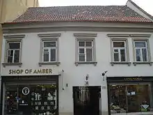 Трёхэтажное здание середины XVII века с фасадом в стиле классицизма напротив (Pilies g. 7) образуют два корпуса — короткий южный и длинный северный. Во двор между ними ведёт подъезд. Дом менял владельцев, перестраивался, реконструировался. После реконструкции в 1964 году здесь на первом этаже действовало обувное и кожгалантерейное ателье, сейчас находится — салон янтарных украшений.