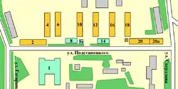 - Между 12 и 10 домами находится водозаборная колонка, так как близлежащие дома с улицы Бредова не были оборудованы водопроводом.