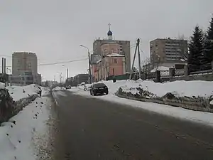 ![]() Кизический Введенский Монастырь (ближний план), здание ФАС ПО (дальний план) и проезжая часть улицы Правосудия | |