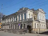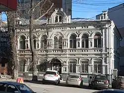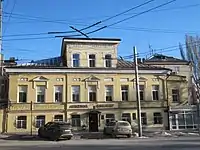 Дом Кузнецова/Бендера. 1867 г. реконструкция 1912 г. арх. Карпенко В. К. Памятник градостроительства и архитектуры регионального значения. Ныне занят администрацией города Саратова.[21] |