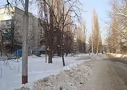 Улица застроена типовыми панельными домами. В здании № 1 находится средняя школа № 62.