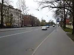 Примерно на половине своего протяжения улица проходит по границе лютеранской части Волковского кладбища.