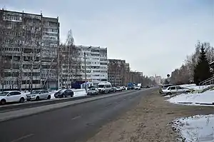 ![]() Улица Сафиуллина: вид в сторону проспекта Победы (декабрь 2018) | |