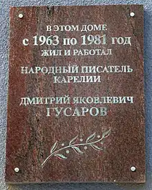 Мемориальная доска Гусарову Д. Я., ул. Свердлова, 10 |