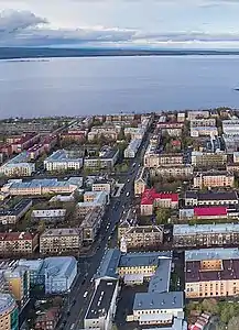 (вид от Онежской набережной, справа в белом здании — винный завод)