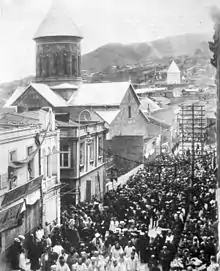Во время похорон Ильи Чавчавадзе похоронная процессия прошла по улице мимо храма Сиони.