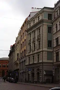 - д. 6 — здание Рижского банка взаимного кредита (1910—1912, архитектор Вильгельм Бокслаф, отремонтирован в 1991—1992 годах по проекту архитекторов Зана Калинки, Андиса Силиса, Петериса Клава)[6]