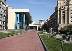 - Государственный концертный зал имени Арнольда Каца — концертный зал, являющийся репетиционной площадкой Новосибирской филармонии. Здание построено в 2013 году. Находится напротив северной стороны Стоквартирного дома[2].