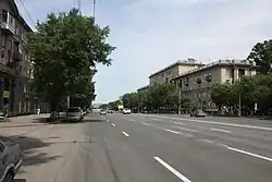 - Затем, от улицы Пархоменко до улицы Плахотного нечётную сторону занимает Мемориал Славы, а другую — здание Администрации Ленинского района. См фото: (недоступная ссылка).