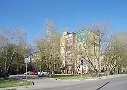 - № 15 — жилой дом (как № 7 и № 11 — 5 этаж., 4 под., 60 кварт.; панельный), с торца — одноэтажная пристройка (бытовое обслуживание)