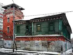 Редкое для данного района Москвы историческое строение является местным визуальным акцентом[2]. Его первый этаж — кирпичный, второй, включая декоративные элементы, — полностью выполнен из дерева[2]. Первоначальный объём здания был построен в 1900-х годах как корпус ткацкой фабрики; на первом этаже располагалось производство, а на втором — жилые и конторские помещения[2][3]. В 1913 году фабрику вместе с оборудованием и инструментом приобрели владельцы торгового дома «Наследники Исакова Г. Г.» Г. И. и П. И. Исаковы, после чего начали здесь производство шерстяных платочных товаров.
