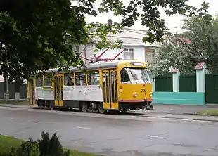 По улице Чермена Баева от площади Свободы до площади Штыба с 1934 года по однопутной линии ходят трамваи. Встречные трамваи идут по параллельной улице Гаппо Баева.