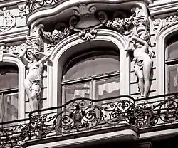 - Жилой дом № 33 был спроектирован архитектором М. О. Эйзенштейном и выполнен в необычном стиле декоративного модерна с преобладанием тенденции к насыщению фасадов мифологическими символами. Это здание отличает богатая декоративная отделка, соответствующая концепции horror vacui («боязни незаполненных пространств» в изобразительном искусстве).