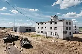 - Штурмовые сапёры 1-й гв. исбр и другие подразделения ЗВО в городке для отработки уличных боёв на Гороховецком артиллерийском полигоне