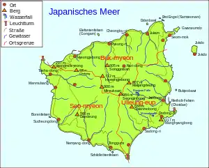 Входит в состав уезда Уллын провинции Кёнсан-Пукто, являясь основной его частью.