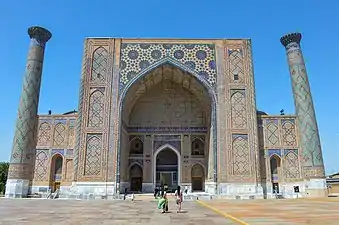 Продолжая политику своего деда Тимура, Улугбек заботился о развитии системы высшего образования в стране. В 1417—1420 годах Улугбек построил в Самарканде медресе, которое стало первым строением в архитектурном ансамбле Регистан. В это медресе Улугбек пригласил большое количество астрономов и математиков исламского мира. Другие два медресе были построены в Гиждуване и Бухаре. На портале последнего сохранилась надпись (хадис пророка Мухаммада): «Стремление к знанию есть обязанность каждого мусульманина и мусульманки». Вообще, все многочисленные надписи на медресе призывают людей к занятиям науками.