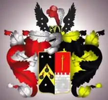 Щит разделён перпендикулярно на две части, в правой в чёрном поле между тремя серебряными звёздами находится золотое стропило, с означенными на нём тремя горящими гранатами. Левая часть содержит в красном поле от подошвы до половины щита восходящую серебряную городовую стену о пяти зубцах, со стоящею над серединою оной стены золотую шпагу эфесом вверх обращённую.