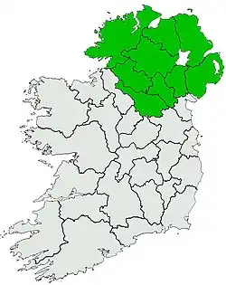 ![]() Территория древнего королевства Улад. Теперь эта часть Ирландии известна как Ольстер — в честь древнего королевства |
