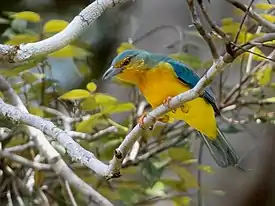 Ультрамариновая танагра[1] (лат. Cyanicterus cyanicterus) — вид птиц из семейства танагровых (Thraupidae), является единственным видом рода. Обитает этот вид во влажных лесах тропической и субтропической зонах горных равнин Бразилии, Французской Гвианы, Гайаны, Суринама и Венесуэлы. Этот вид занесён в Красную книгу МСОП (Категория — LC)
