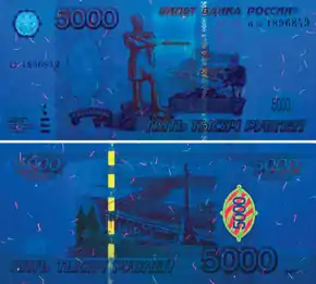 Для защиты документов от подделки их часто снабжают люминесцентными метками, которые видны только в условиях ультрафиолетового освещения. Большинство паспортов, а также банкноты различных стран содержат защитные элементы в виде краски или нитей, светящихся в ультрафиолете.