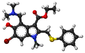 Умифеновир (МНН — Umifenovirum, umifenovir[5]) — российское лекарственное средство, для которого отсутствуют научные доказательства эффективности для лечения какой бы то ни было болезни[6][7][8][9][10], продаваемое как противовирусный препарат[1][9].