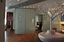 Панели смарт-стекла, изготовленные с применением специальной звукопоглощающей плёнки PVB, используются для акустического зонирования помещений различного назначения.