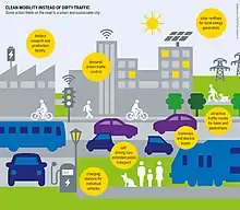 Отрасли, которые улучшают технологию «умного города» включают в себя государственные услуги[7], управление городской транспортной сетью, рациональное использование энергии[8], здравоохранение[9], рациональное использование воды, инновационные сельское хозяйство и утилизация отходов[10].