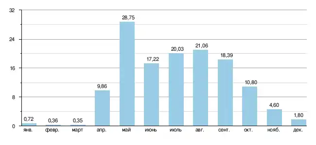 | Расход воды | 11,1 м³/с (8,2 км от устья) |