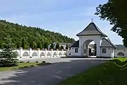Известно, что Уневский монастырь был очень хорошо укреплён и имел мощные въездные ворота. Про их существование, до недавнего времени, можно было лишь догадываться, поскольку ни один из письменных истоков про это не говорит, однако летом 2002 года, совершенно случайно, в результате земельных работ, были выявлены остатки подъездных ворот и средневековые оборонные укрепления. Ворота находятся на пятьдесят метров южнее современных палат митрополита. Во время раскопок открыли лишь восточную часть этого большого сооружения. Про то, что оно имело намного большую протяжённость, свидетельствуют характерные для средневековья опорные элементы под воротами. В средней части строения была дорога, выложенная из тёсаных камней. А с восточной части к сооружению прилегал насыпной земляной вал, который позже был ликвидирован.