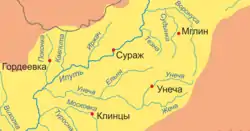 На реке Унеча расположен город Унеча. В нижнем течении реки в 4 км южнее русла находится город Клинцы[3].