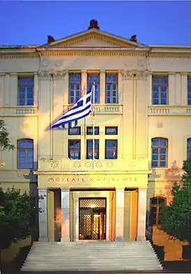 | Девиз | др.-греч. MOYΣAIΣ XAPIΣI ΘYE (Жертвуй Музам и Харитам) |
