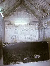 Стены передней и погребальной камер сверху донизу покрывают бесконечные столбцы надписей, сделанных прекраснейшими сине-зелёными иероглифами, а двускатный потолок усеян сине-зелёными звёздами. Надписи на стенах двух главных камер демонстрируют самый продолжительный и удивительный ритуал в честь умершего. Они очень важны, поскольку представляют собой древнейшую версию так называемых «Текстов пирамид».