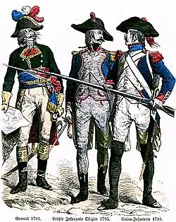 Первоначально стремились придать особый вид униформе каждого полка, но достаточно быстро убедились в том, что предпочтительней ввести для каждого рода войск (а затем и всей армии) униформу одного покроя, а воинские части различать между собой формой и цветом воротника, отворотов, обшлагов, галунов, тесьмы, а также пуговиц. Однако некоторые воинские части, такие, как, например, гусары, сохранили своё особое обмундирование.
