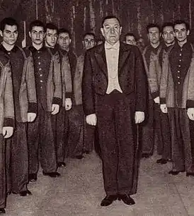 ![]() А. Б. Буше в окружении униформистов | |