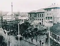 Косово в течение около пяти веков было частью Османской империи и за это время обзавелось множеством памятников османской архитектуры[9]. После окончания Второй мировой войны коммунистические власти Югославии начали внедрять различные меры по модернизации в пользу изменения архитектурного ландшафта и дизайна городских поселений[10]. Эти меры были направлены на изменение панорам поселений, которые, как считалось, имели элементы, связанные с нежелательным османским прошлым, и признаки, которые назывались «отсталыми»[10]. С конца 1940-х годов архитектурные памятники в главных городских центрах Косова стали разрушать в рамках проводимых местными властями планов по модернизации[9]. В 1950-х годах этот процесс проводился югославским Институтом городского планирования (сербохорв. Urbanistički zavod), чья деятельность по социалистической модернизации была наиболее показательна в Приштине[9]. Османский Приштинский базар, включавший в себя около 200 магазинов, принадлежащих албанцам, располагался вокруг мечети в центре Приштины[9]. Эти сооружения были экспроприированы в 1947 году и снесены рабочими бригадами, известными как Народный фронт (алб. Fronti populluer, сербохорв. Narodnifront)[9].