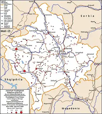 В Косове разрушение архитектурного наследия шло в русле сербской кампании этнических чисток, схожих с теми, что проводились сербскими силами во время Боснийской войны[5]. Уничтожение несербского наследия было методическим и спланированным компонентом этнических чисток в Косове[5].