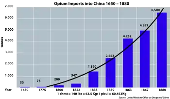 В 1784 году британское правительство снизило ввозную пошлину на китайский чай со 110% до 10%, что вызвало всплеск спроса на внутреннем рынке. Это привело к серьёзному дефициту серебра у Ост-индской компании, которая была единственным импортёром чая[2]. Китайцы принимали только серебро и чтобы восстановить торговый баланс, Ост-индская компания в 1793 году приобрела у британского правительства монополию на производство опиума в Индии. Однако с 1800 года китайское правительство запретило продавать опиум на территории страны[3], и груз опиума стал отправляться на аукцион в Калькутте, откуда частные торговцы стали контрабандой доставлять опиум в южные порты материкового Китая[4][5].