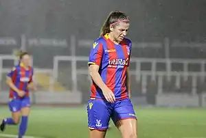 ![]() Сиара Шервуд во время матча женского Чемпионшипа «Кристал Пэлас»—«Льюис» (3:0), 11 октября 2017 года | |||||||||||||||||||||||||||||||