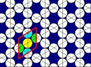 Существует 11 упаковок кругов на основе 11 однородных мозаик плоскости[3]. В этих упаковках любая окружность может быть отображена на любую другую окружность путём отражения или вращения. Шестиугольные промежутки могут быть заполнены одним кругом, а двенадцатиугольные промежутки могут быть заполнены 7 кругами, образуя 3-однородные упаковки. Усечённая тришестиугольная мозаика с обоими типами промежутков могут быть заполнена как 4-однородная упаковка. Плосконосая тришестиугольная мозаика имеет две зеркальные формы.