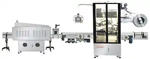 - также существуют этикетировочные машины рукавного типа, которые устанавливают рукав из термопластичного материала на продукт а затем проводится термоусадка пластикового рукава на продукте, тем самым производится качественное обжатие. Такой принцип является более экономичным, так как не нужно использовать специальную подложку как для самоклеящейся этикетки.