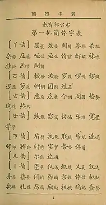 Упрощение иероглифического письма было предложено в начале XX века[2], так как сложная письменность рассматривалась как одна из причин экономического отставания Китая[3], хотя фактически упрощённые иероглифы существовали и раньше, в частности, в скорописи.