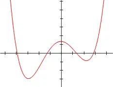 Так как является многочленом чётной степени, она имеет один и тот же предел при стремлении к плюс и к минус бесконечности. Если , то функция возрастает до плюс бесконечности с обеих сторон, и следовательно, имеет глобальный минимум. Аналогично, если , то функция убывает до минус бесконечности с обеих сторон, и следовательно, имеет глобальный максимум.
